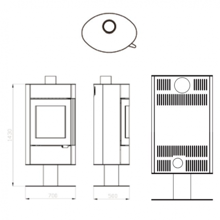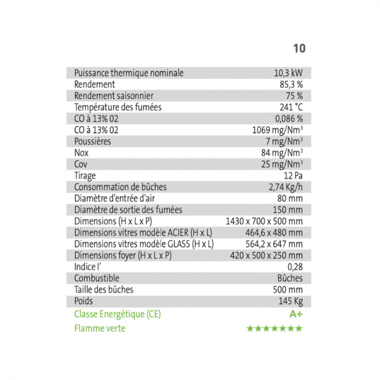 Il est équipé d’une grande poignée froide toute hauteur (confort d’utilisation) à fermeture automatique ainsi que d’un range bûches.
